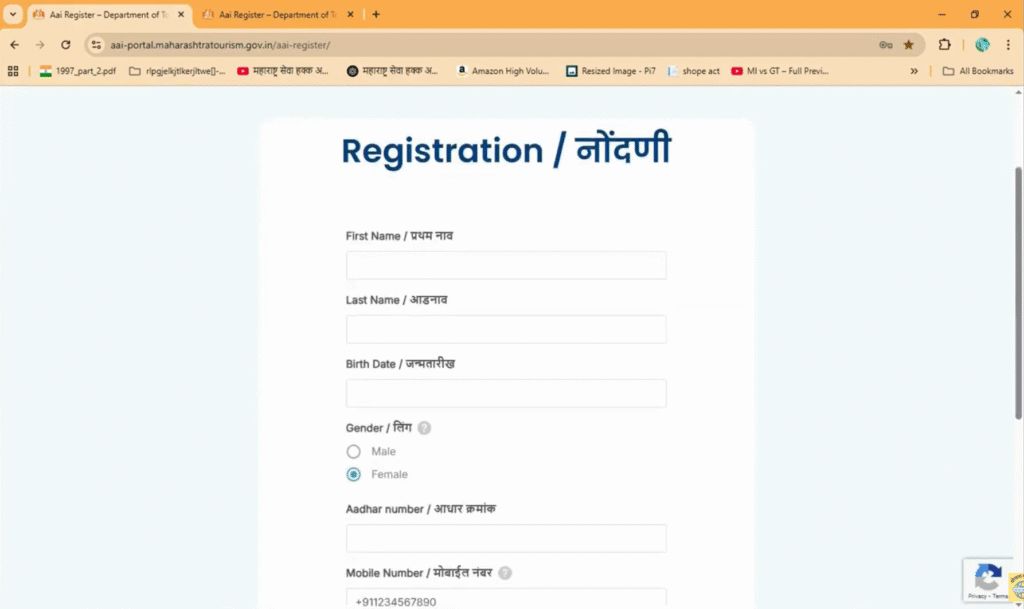 - दिसलेल्या वेबसाईटवर क्लिक करा.: https://aai-portal.maharashtratourism.gov.in/aai-register/