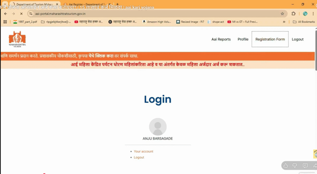- गुगलवर “Aai Karj Yojana Portal” किंवा “Aai Registered Portal” असे टाईप करा.