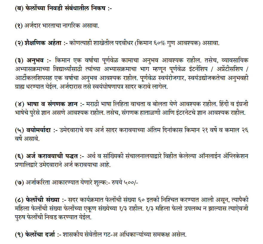 CM Fellowship 2026 Maharashtra महत्वाच्या अटी आणि शर्ती