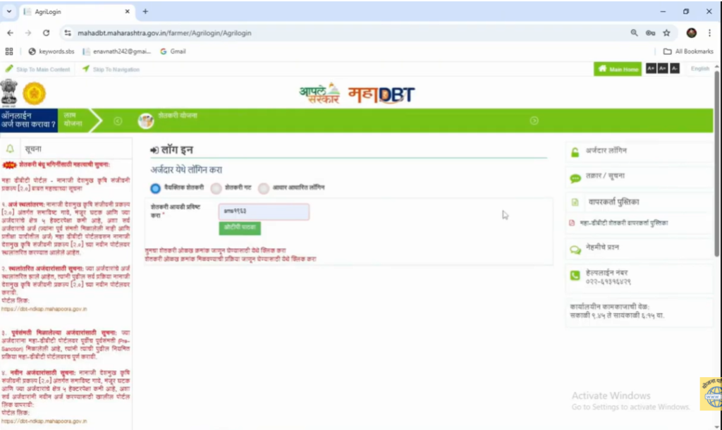 - MahaDBT Farmer Portal वेबसाइटवर भेट द्या