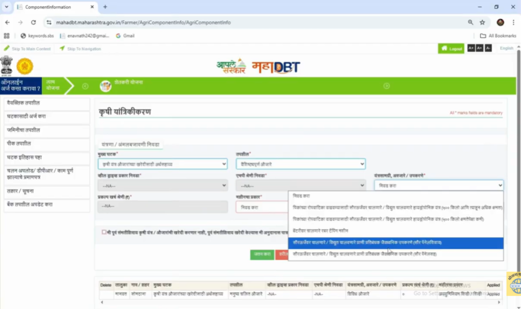 - कृषी यंत्रिकीकरण बाबी निवडा → क्लिक करा