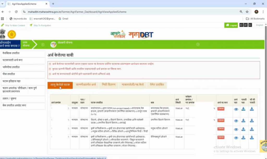 ➡ लागू केलेले घटक (Applied Components) → क्लिक करा