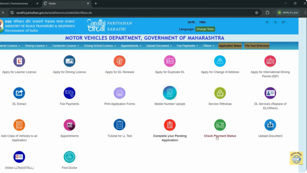 - महाराष्ट्र RTO च्या ऑनलाईन सर्विसेसची लिस्ट दिसेल