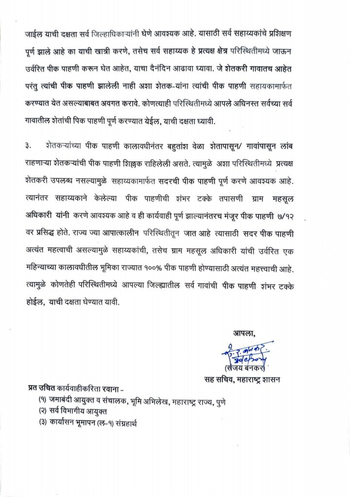 e peek pahani प्रक्रियेत सहाय्यक व ग्रामसेवक यांची भूमिका महत्वाची आहे.