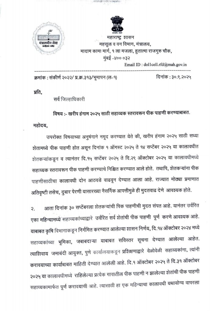 - ३० सप्टेंबर २०२५ रोजी थेट शेतकऱ्यांकडून पिक पाहणीची मुदत संपली आहे.
