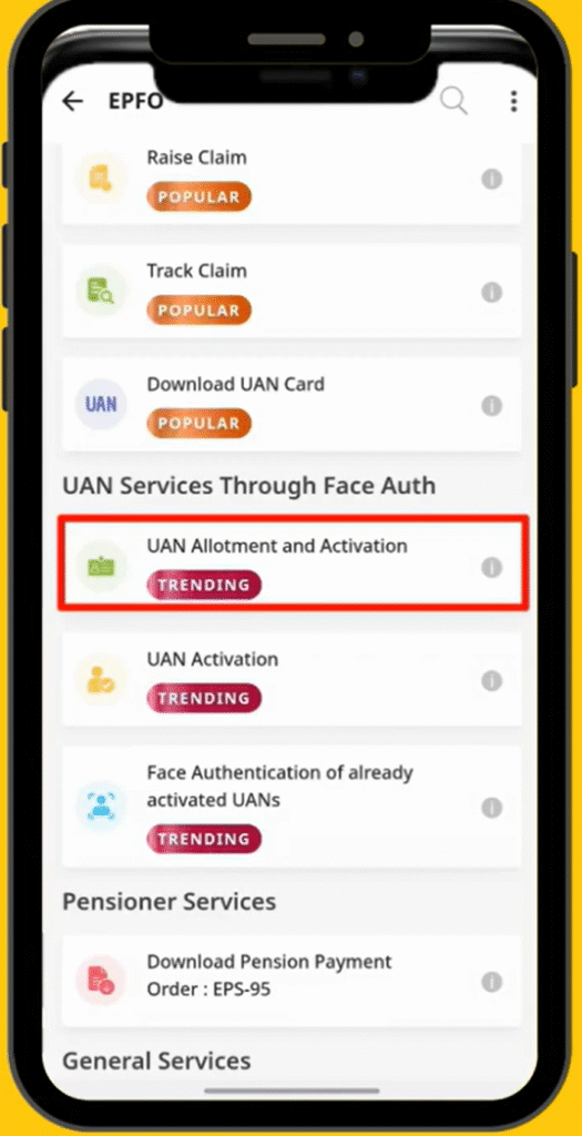 👉 त्यातील UAN Allotment & Activation या पर्यायावर क्लिक करा.