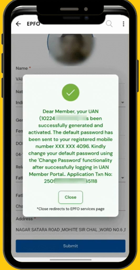 👉 Submit होताच तुमचा नवीन UAN नंबर Generate होईल.