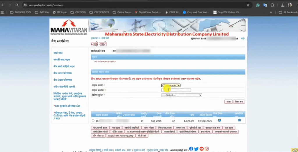 👉 Consumer Number तुमच्या जुन्या बिलावर वरच्या बाजूला लिहिलेला असतो.