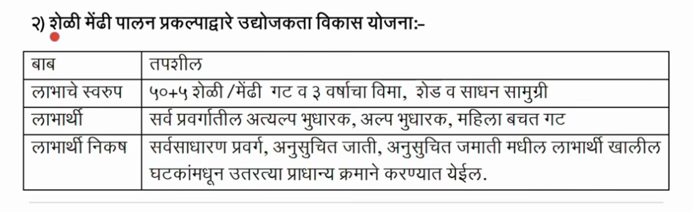 ग्रामीण भागात शेळीपालन हा एक अत्यंत फायदेशीर व्यवसाय मानला जातो. त्यामुळे या योजनेअंतर्गत 50 शेळ्या आणि 5 बोकड असा प्रकल्प सुरू करण्यासाठी अनुदान दिले जाणार आहे.