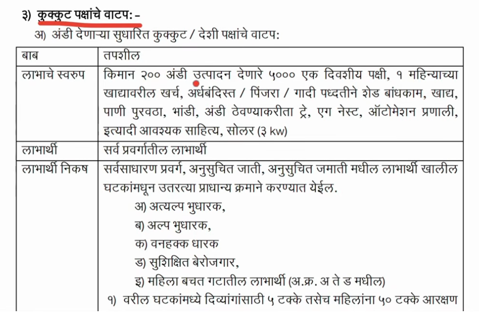 कुक्कुटपालन व्यवसाय देखील ग्रामीण भागातील लोकांसाठी मोठी उत्पन्नाची संधी आहे. त्यामुळे या योजनेअंतर्गत कुक्कुटपालन प्रकल्पासाठीही आर्थिक मदत दिली जाणार आहे.