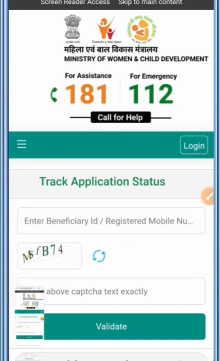• वेबसाइटवर Track Application पर्यायावर क्लिक करा