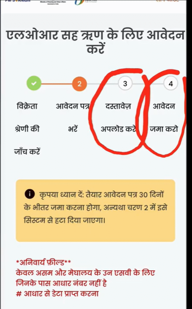 PM SVANidhi Yojana साठी अर्ज प्रक्रिया ऑनलाइन आहे. अर्ज करण्यासाठी खालील टप्पे पार करावे लागतात.