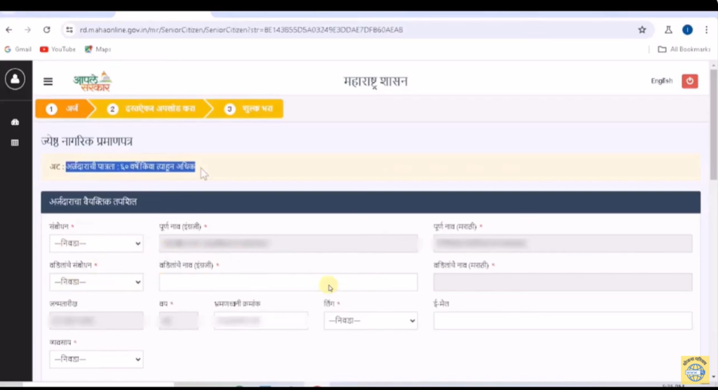 महाराष्ट्रात Senior Citizen Card साठी अर्ज Aaple Sarkar पोर्टल वरून करता येतो.