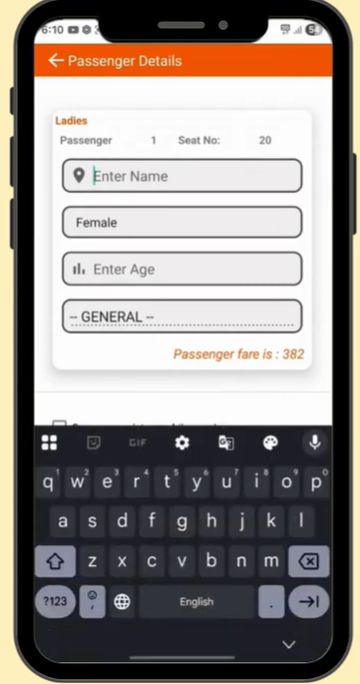 Seat निवडल्यानंतर तुमच्याकडून प्रवासी माहिती मागितली जाईल: