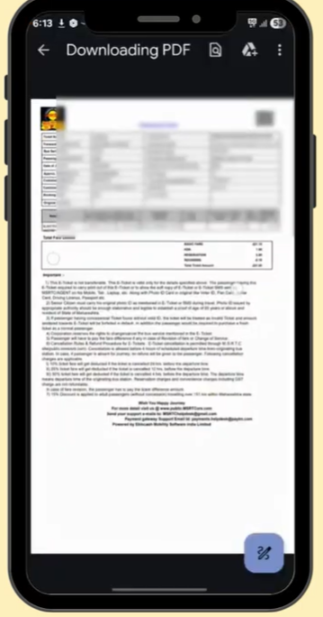 तुमचं तिकीट PDF स्वरूपात Download होईल आणि मोबाईलमध्ये सेव्ह होईल.