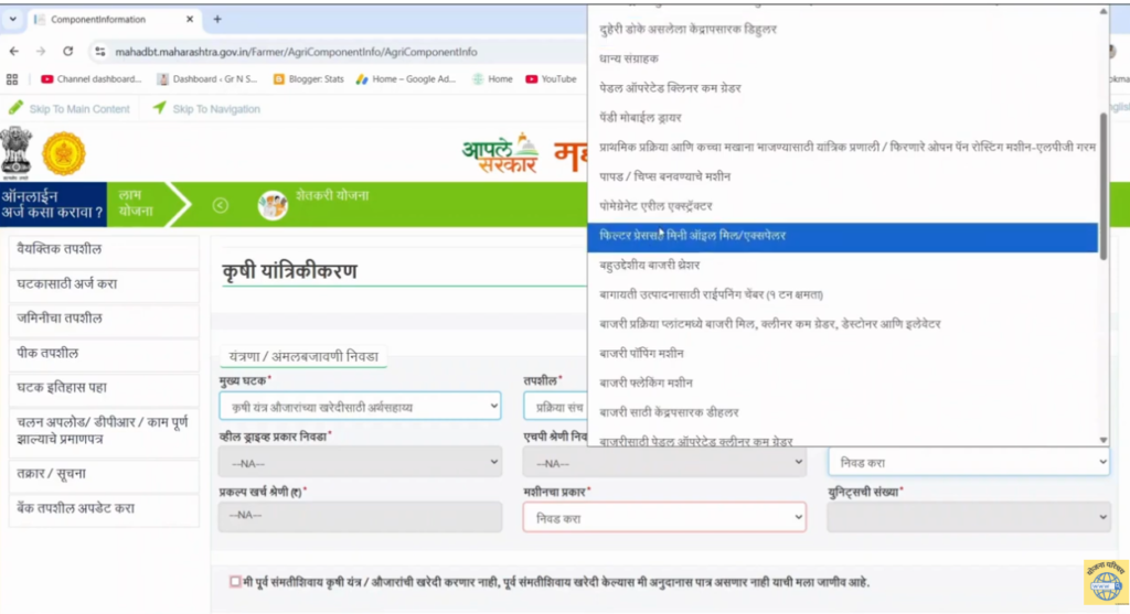 Step 4: कृषी यंत्रीकरण घटक निवडा