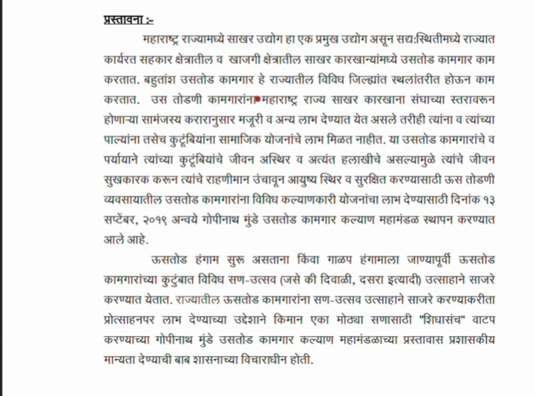 महाराष्ट्रामध्ये साखर उद्योग हा एक प्रमुख उद्योग आहे. या उद्योगात हजारो ऊसतोड कामगार हंगामी स्वरूपात काम करतात. अनेक कामगार एका जिल्ह्यातून दुसऱ्या जिल्ह्यात स्थलांतर करून मजुरी करतात. त्यांना नियमित पगार आणि काही सुविधा मिळतात; परंतु त्यांच्या कुटुंबांना अनेकदा सामाजिक योजनांचा लाभ मिळत नाही.
