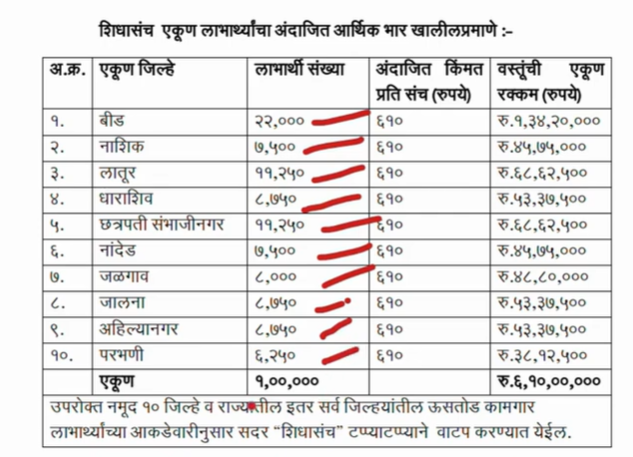 यामुळे ऊसतोड कामगारांचे जीवन अस्थिर आणि आर्थिकदृष्ट्या कमकुवत राहते. या पार्श्वभूमीवर शासनाने सण-उत्सव काळात त्यांना आवश्यक अन्नधान्य उपलब्ध व्हावे आणि त्यांचे जीवनमान सुधारावे या उद्देशाने शिधासंच वाटप योजना सुरू केली आहे.