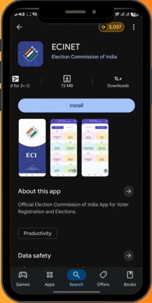 2. सर्च करा 👉 “ECINet App” किंवा “Voter Helpline App”.